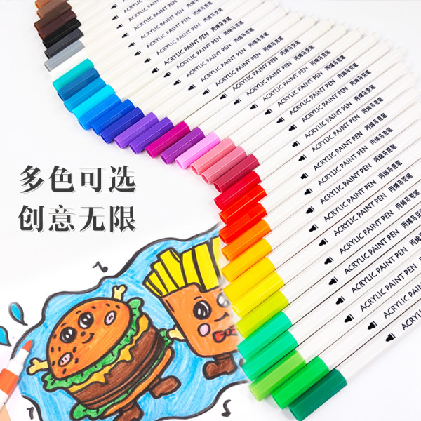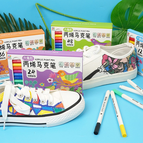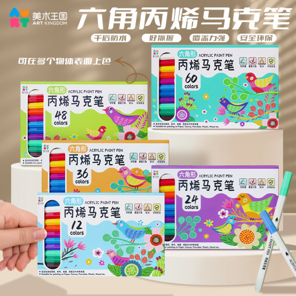 美术王国 丙烯马克笔单头12色48色24色颜色单支三角软头学生幼儿园美术专用绘画涂鸦水性笔无毒水洗不透纸