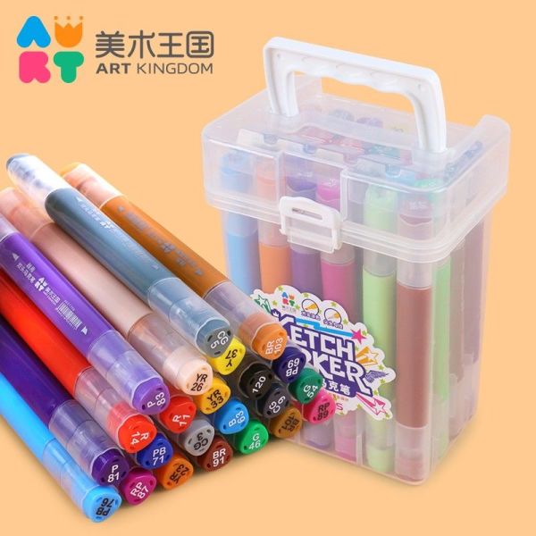 美术王国 油性双头彩杆 马克笔套装 全套24色收纳盒
