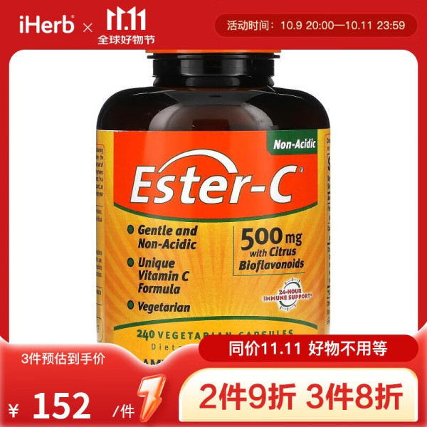 安美氏 American Health 酯化维生素C植物胶囊 温和护胃抗氧高效防御力UP 120单位13646
