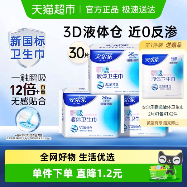 88VIP:安尔乐 瞬吸液体量大防漏日用卫生巾姨妈巾30片