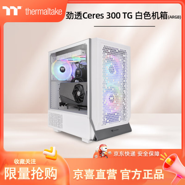 Tt(Thermaltake)劲透Ceres 300 TG ARGB 白色 机箱水冷电脑主机(配ARGB风扇*2/无光风扇*1/支持360水冷)