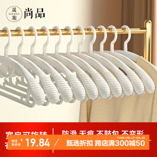 晟旎尚品宽肩可旋转无痕塑料晾衣架子防滑晾晒不鼓包衣撑子挂架 白色10支