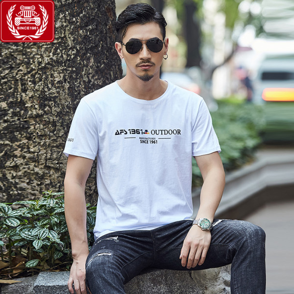 男士短袖T恤纯棉圆领男上衣服夏季宽松大码打底衫潮休闲印花半袖