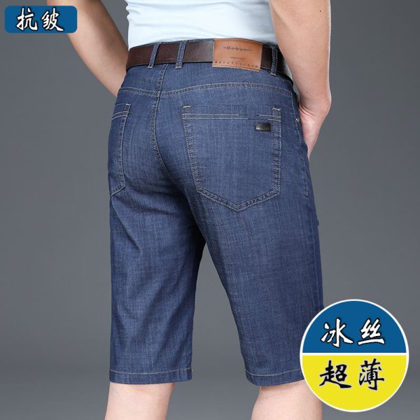 夏季薄款冰丝牛仔短裤男士五分裤子男休闲中裤宽松直筒马裤超薄潮