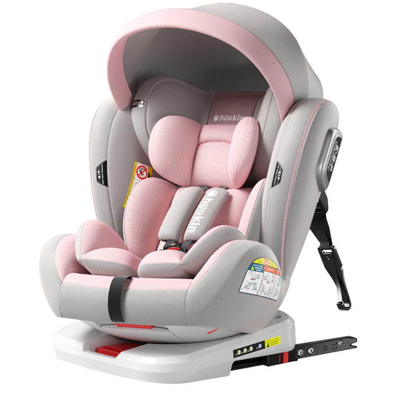 Heekin德国 儿童安全座椅汽车用0-4-12岁婴儿宝宝360度旋转ISOFIX硬接口 时尚粉(ISOFIX 360度旋转)