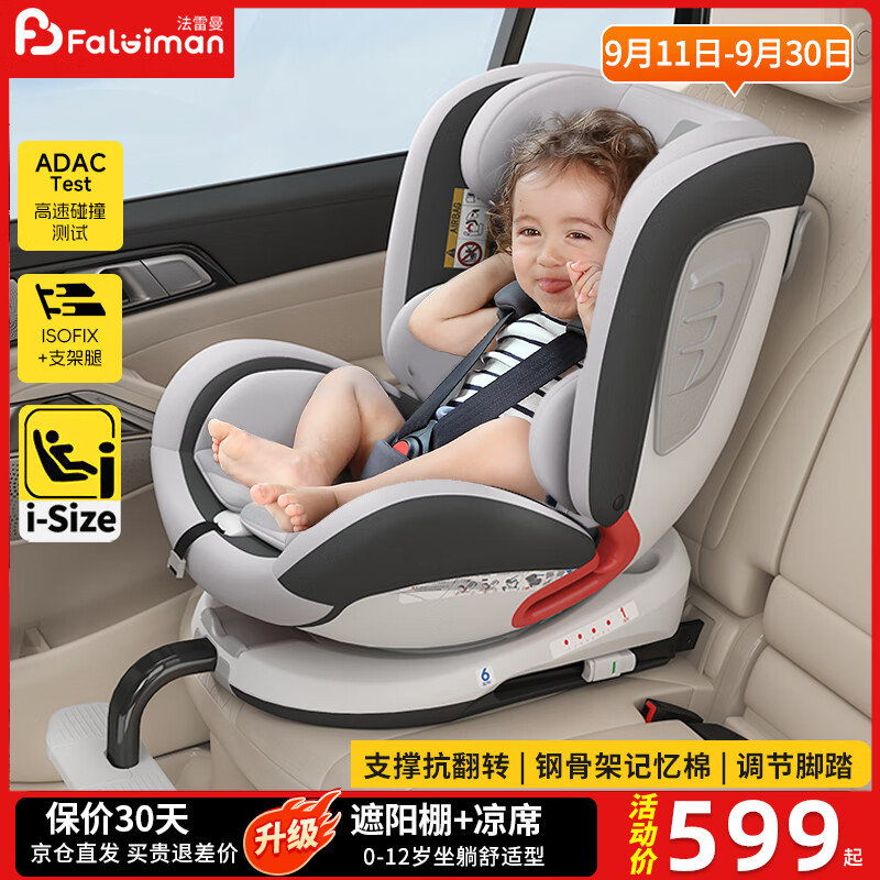 法雷曼儿童安全座椅汽车用0-12岁360度旋转婴儿宝宝车载坐躺i-Size认证 魔力灰pro【钢骨架 支撑腿】