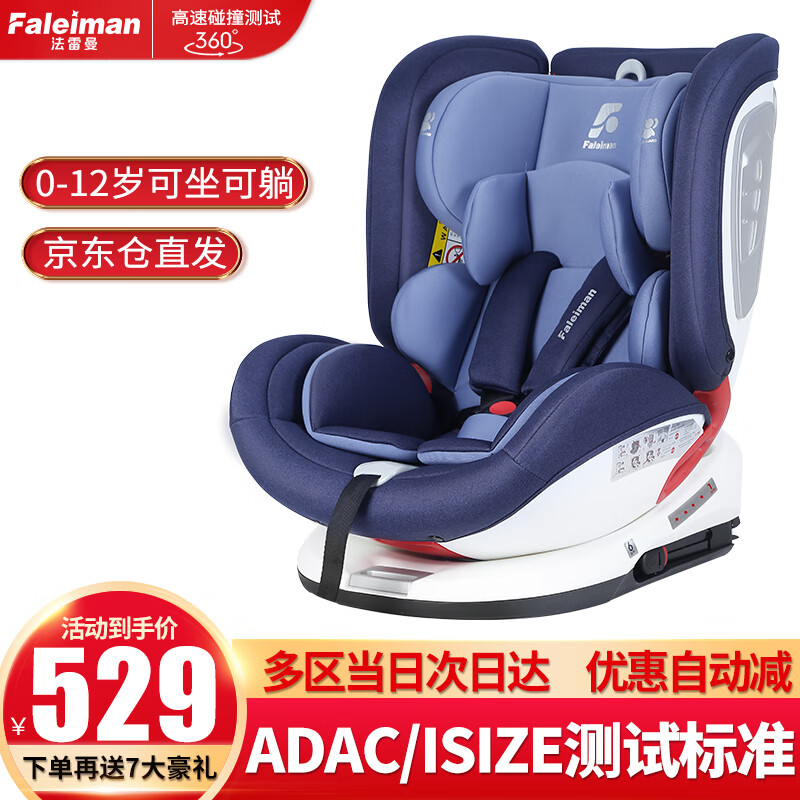 法雷曼儿童安全座椅汽车用0-12岁360度旋转婴儿宝宝车载坐躺i-Size认证 海洋蓝