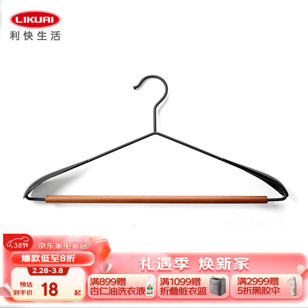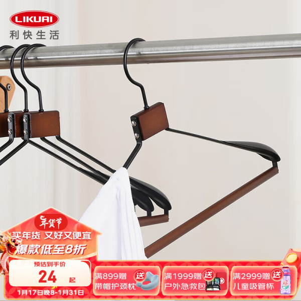利快衣架无痕榉木防滑晾衣架子衣服架大衣挂架撑子衣柜 榉木圆线衣架 1个