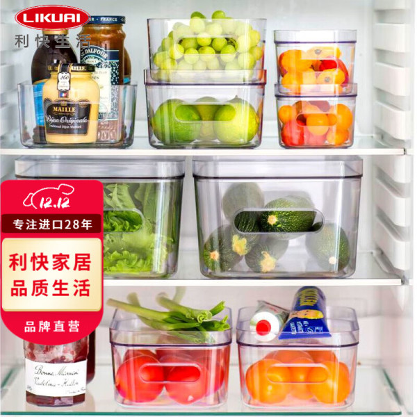 利快 透明冰箱收纳盒瑞典食物储物盒保鲜盒水果蔬菜整理盒 透明冰箱收纳盒四件套