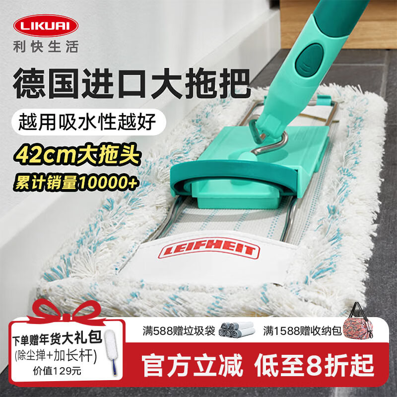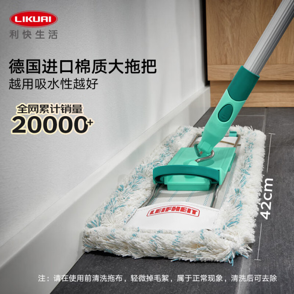利快 德国进口平板拖把42cm轻型铝杆长140cm1布家用一拖净大号地拖