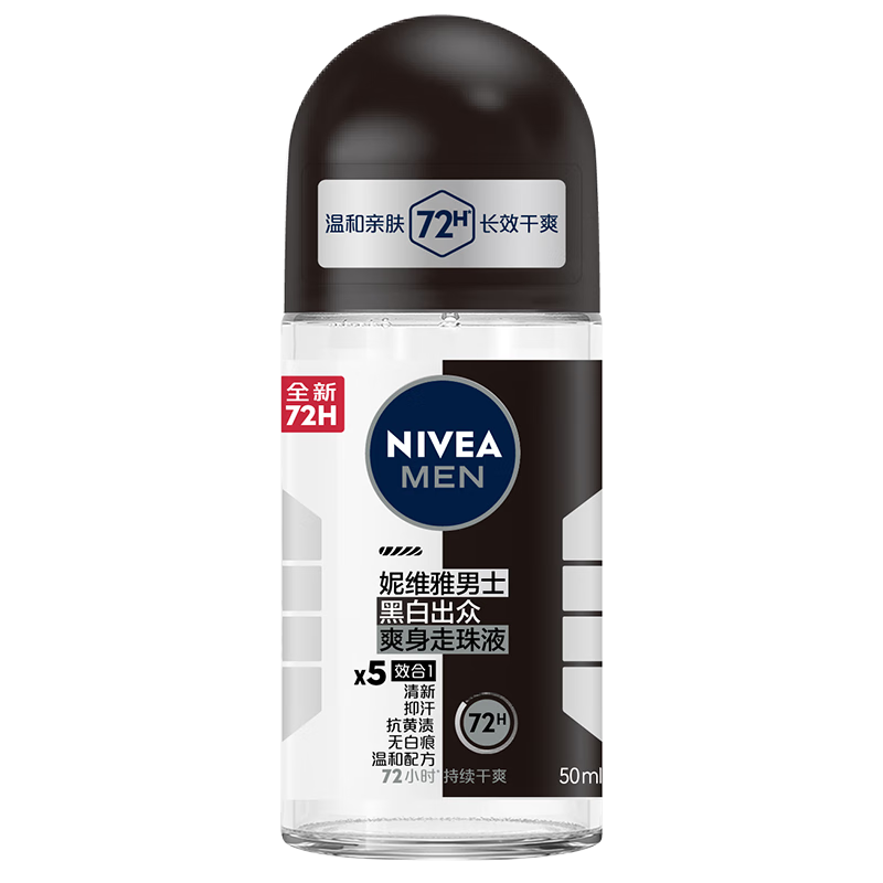 妮维雅(NIVEA)抑汗除臭净味香体腋下止汗露干爽滚珠男士黑白出众爽身走珠液50ml