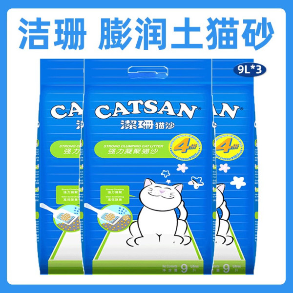 洁珊 CATSAN 猫砂9升*3袋膨润土砂公斤满10kg20斤包邮猫沙清洁用品