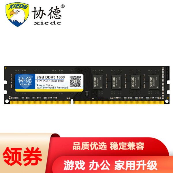 协德 xiede PC3-12800 DDR3 1600MHz 台式机内存 普条 黑色 8GB