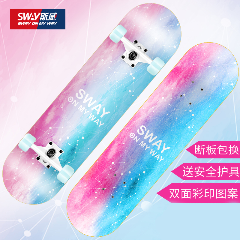 斯威(SWAY) 滑板四轮双翘板儿童滑板车成人专业男女青少年初学者刷街代步板 花旦双面(闪光轮)