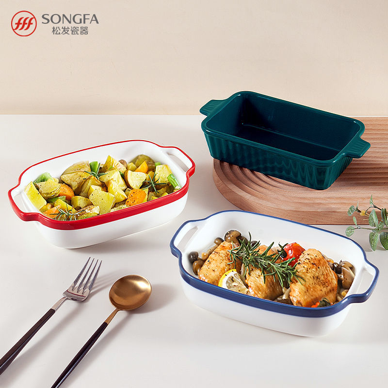 居图陶瓷北欧双耳带把焗饭盘烘焙家用水果盘烧烤加热鱼盘蒸煮烤碗
