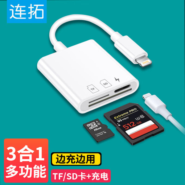 连拓 苹果手机读卡器SD单反相机TF内存卡iPhone转接lighting快充ipad air平板OTG行车记录仪监控转换