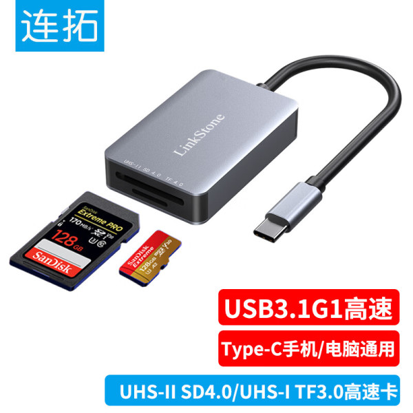 连拓 Type-C高速OTG读卡器 USB-C4.0多功能SD/TF电脑iPad手机UHS-II2代读卡器 适用单反监控存储内存卡