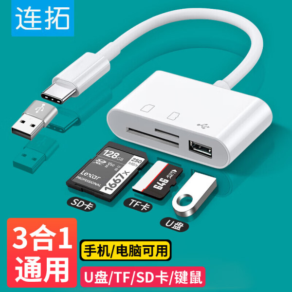LinkStone 连拓 Type-C/USB多功能读卡器 高速SD/TF三合一OTG读卡器