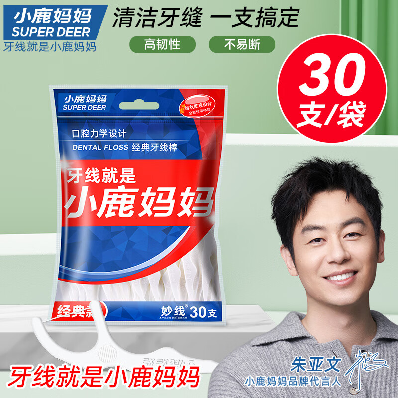 小鹿妈妈经典细滑牙线袋装专业洁齿牙线棒家庭装牙签30支