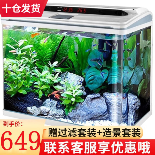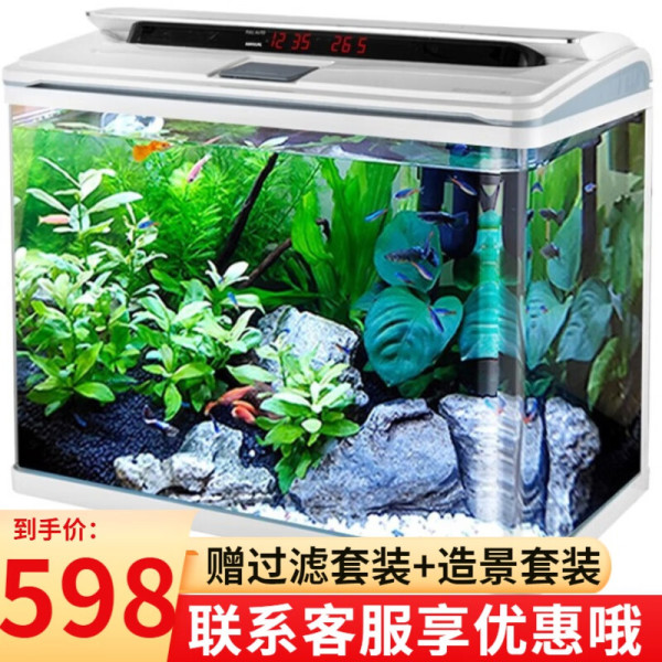鱼之宝 Fish treasure 鱼缸水族箱白玻璃直角生态鱼缸过滤器玻璃鱼缸家用客厅彩灯鱼缸 G