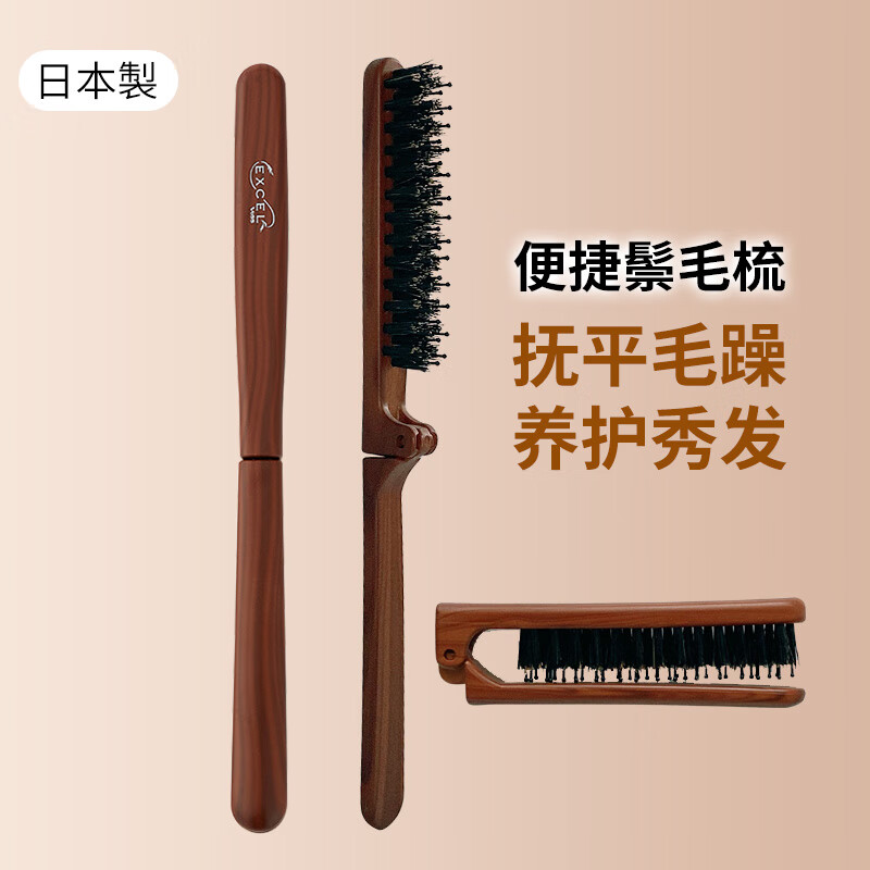 VESS日本进口vess猪鬃毛梳子便携式可折叠随身抚平毛躁防木柄顺发梳女 EXC-630