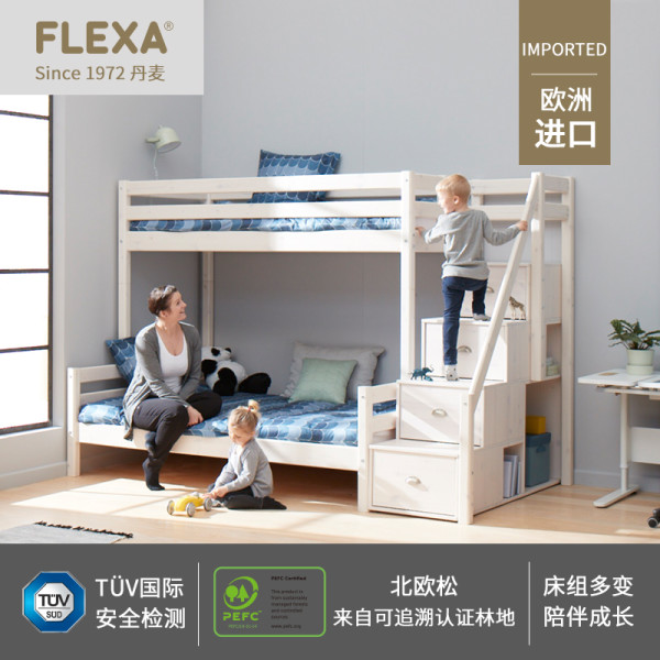 FLEXA 芙莱莎 进口实木儿童梯柜高低床上下床松木实木 轻奢简约