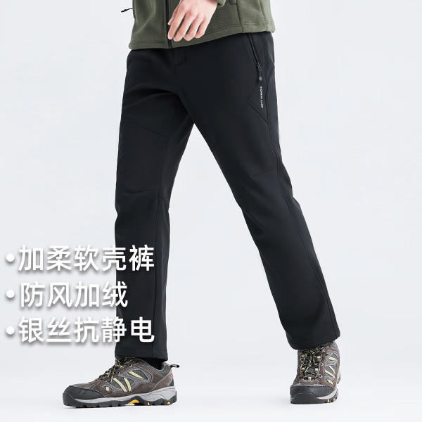 Pioneer Camp 藏狼户外直筒裤男秋冬加绒徒步长裤爬山登山裤软壳裤 黑色 L