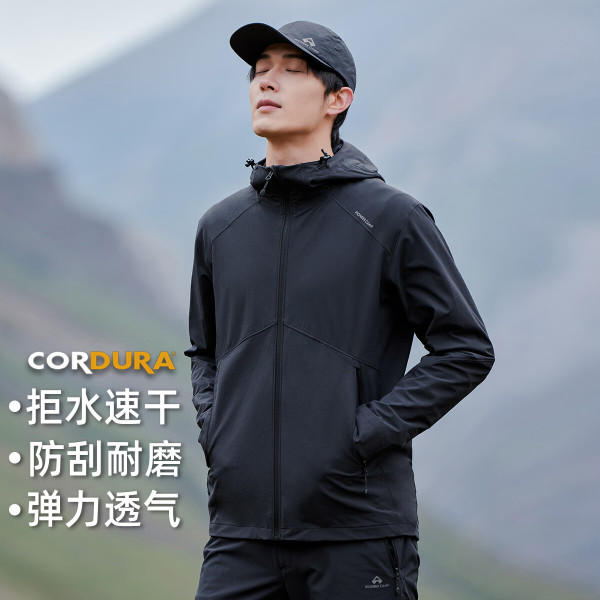 Pioneer Camp 海狮考杜拉软壳衣男士春秋季新款户外徒步上衣休闲连帽夹克