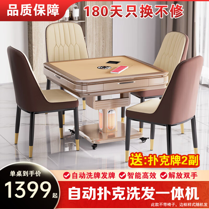 雀汇【防侧翻/20万次不卡牌/低音机】麻将机全自动麻将桌折叠餐桌一体 30【送扑克牌】全自动洗发一体扑克机 折叠 香槟金 高配版LK钻石106