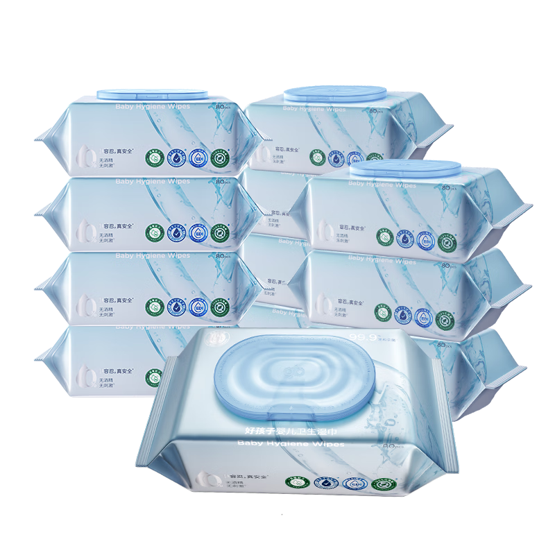 好孩子(gb)婴儿卫生湿巾0系列湿巾80抽*12包植物纤维宝宝新生儿湿纸巾