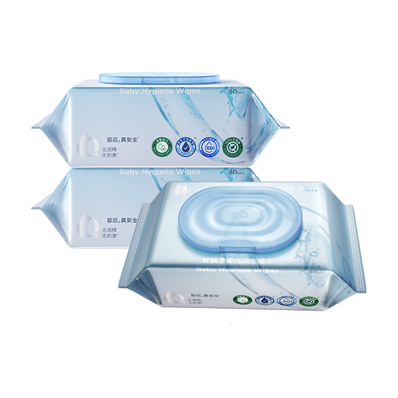 好孩子(gb)婴儿卫生湿巾 海洋水卫生杀菌湿巾80片*3包 婴儿湿巾99.9%杀菌率