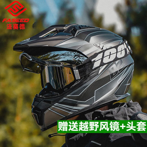 拉力盔摩托车头盔双镜片公路越野盔机车全盔摩旅四季FS606法赛德 灰斯巴达(赠镀银风镜+头套)