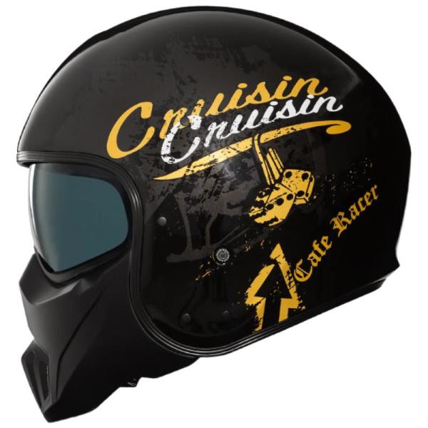 FASEED摩托车头盔法西德复古鬼脸3/4男女组合盔机车咖啡骑士V1四季3C 玻纤-哑黑(哑黑下巴) L(57-58)
