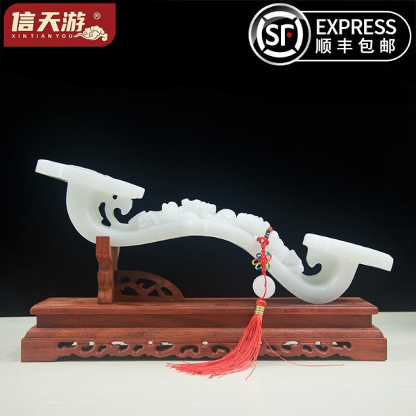 TRAVELSKY 信天游 玉如意摆件中式天然玉石吉祥如意客厅玄关办公