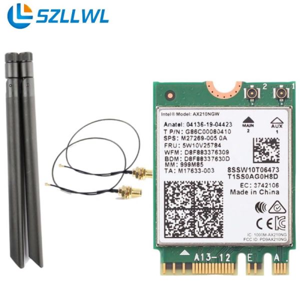szllwl ax210蓝牙二合一网卡wifi发射接收器wifi6代5374m蓝牙5.2三频m.2模块台式机外置天线