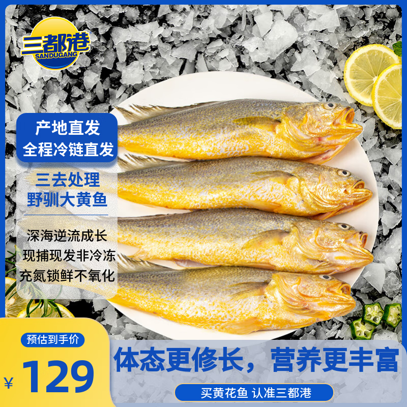 三都港【冰鲜】三去野驯黄花鱼净重1100g/2条 黄鱼 中秋 源头直发
