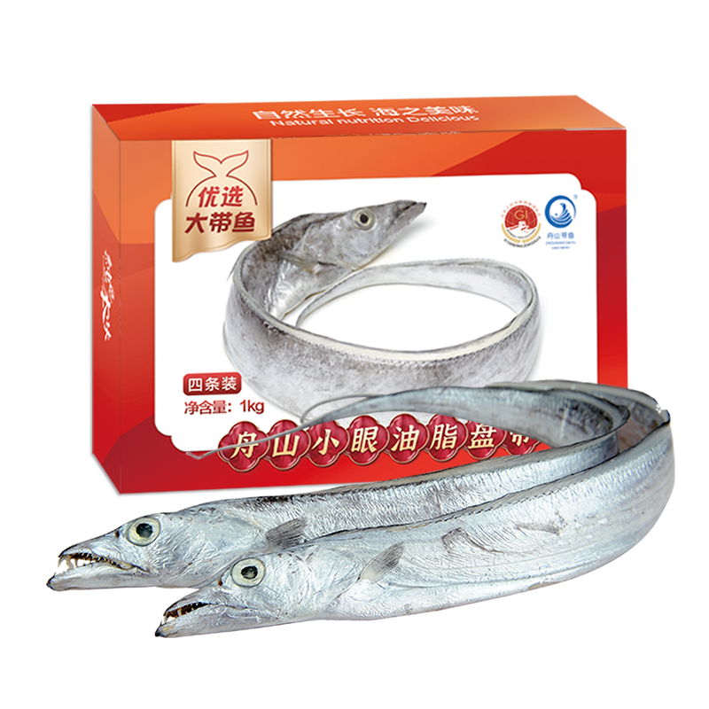 纯色本味 冷冻舟山小眼油脂盘带 2斤 烧烤 带鱼礼盒 4条装 刀鱼 生鲜鱼类