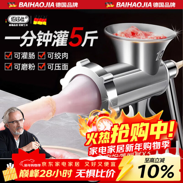 移动端、京东百亿补贴:佰好佳 手动绞肉机灌肠机家用不锈钢刀
