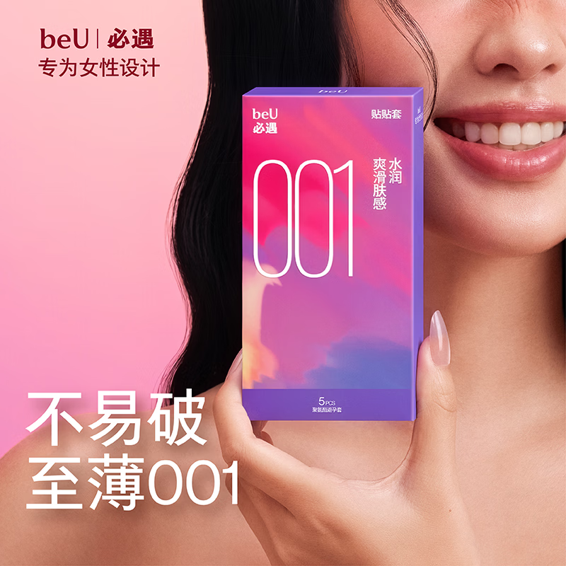 必遇(beU)必遇贴贴套001安全套避孕套超贴合裸入官方正品安全套5只装