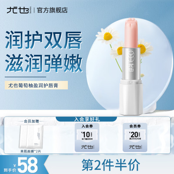 尤也 葡萄柚盈润护唇膏女润护唇部护理补水滋润一 葡萄柚盈润护唇膏