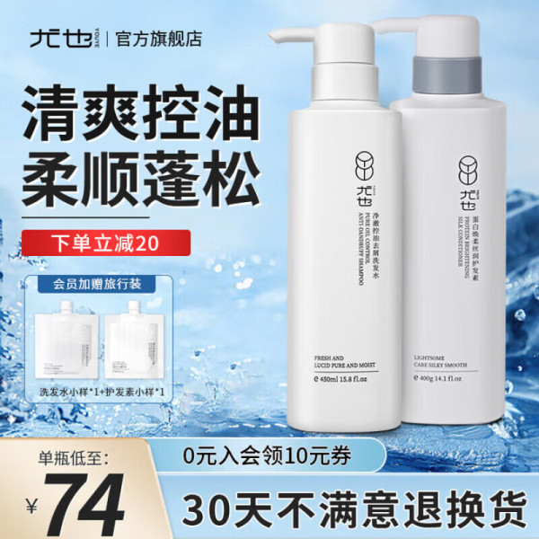 UYHOME 尤也 海盐洗发水控油蓬松柔顺去屑洗头膏露护素套装男女官方舰旗店 洗发水*1+护发素*1