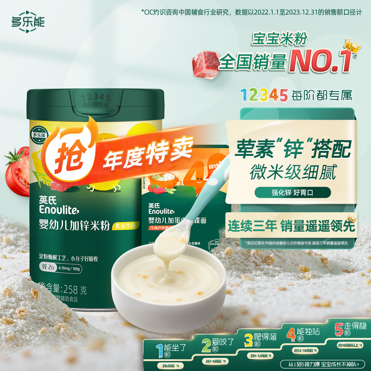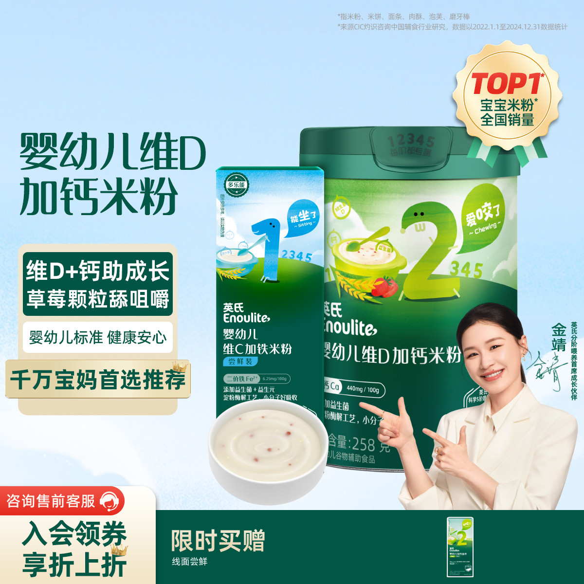 英氏(Engnice)婴幼儿米粉 多乐能维C加铁益生元营养宝宝辅食高铁米糊1阶258g