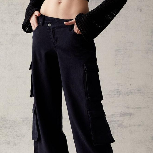 PACSUN 黑色不对称90年代宽松工装牛仔裤