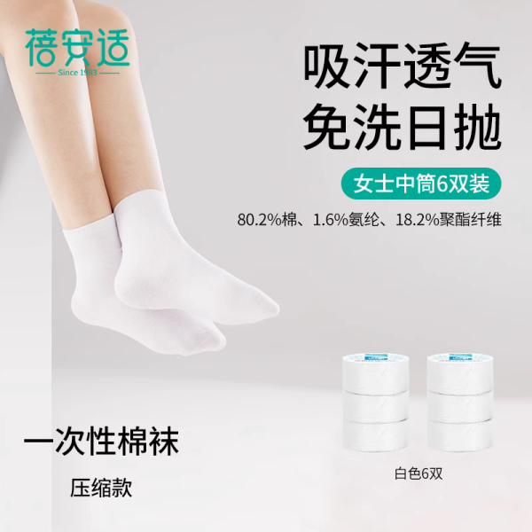 移动端:蓓安适 一次性袜子男女袜吸汗透气中筒短筒旅行出差免洗日抛袜子