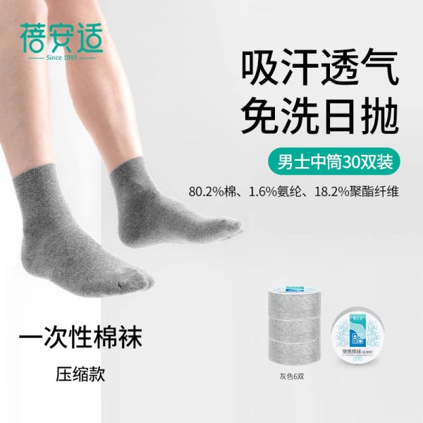 移动端:蓓安适 一次性袜子男女棉袜30双吸汗透气中筒短筒旅行日抛压缩袜子
