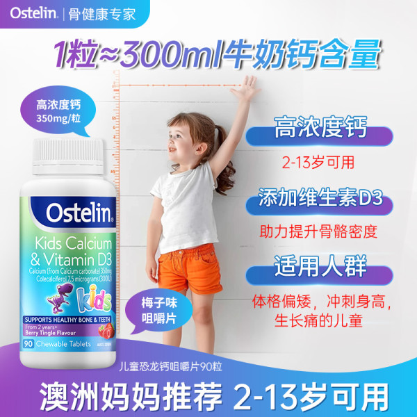 ostelin奥斯特林儿童牛乳钙镁锌VD3咀嚼片 90粒 2-13岁 澳洲进口