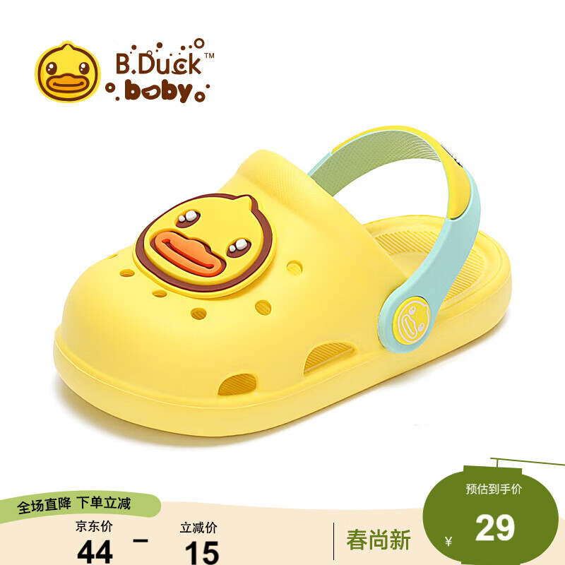 B.Duck小黄鸭童鞋儿童拖鞋男女童耐磨家居鞋洞洞鞋5302嫩黄32