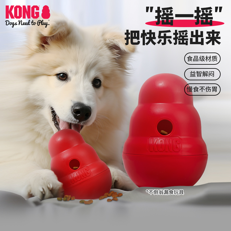 KONG狗玩具不倒翁漏食球大型犬消耗精力藏食宠物丰容益智零食玩具