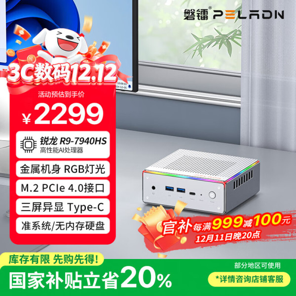 磐镭 HA-4 mini主机 锐龙R9 7940HS迷你主机 RGB灯光 准系统 游戏办公设计高性能台式机电脑