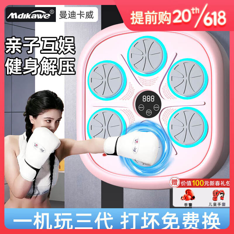 曼迪卡威(Mdikawe)智能音乐拳击机墙靶反应靶成人儿童6-10-12岁男孩生日礼物家用 粉色成人全包 儿童全包手套 不扰民/高音质立体声/可连手机